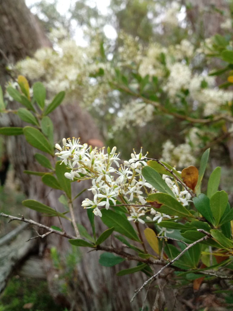 Everywhere. Bush to small tree. Sweet smelling but spiny.