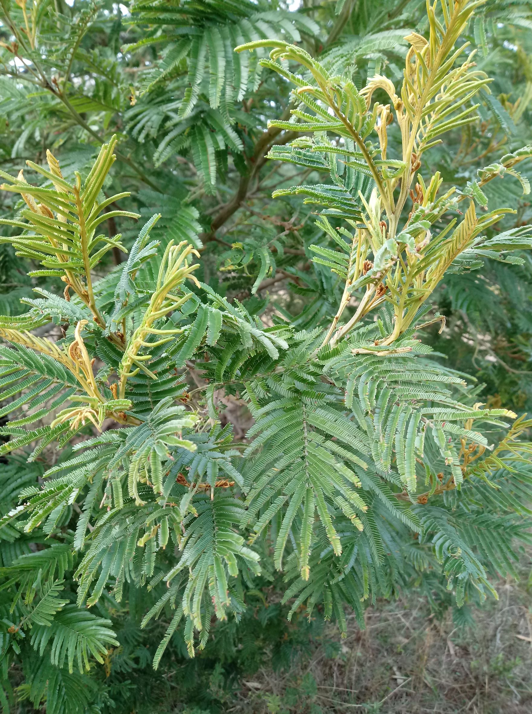 • Feathery leaves with paired leaflets.