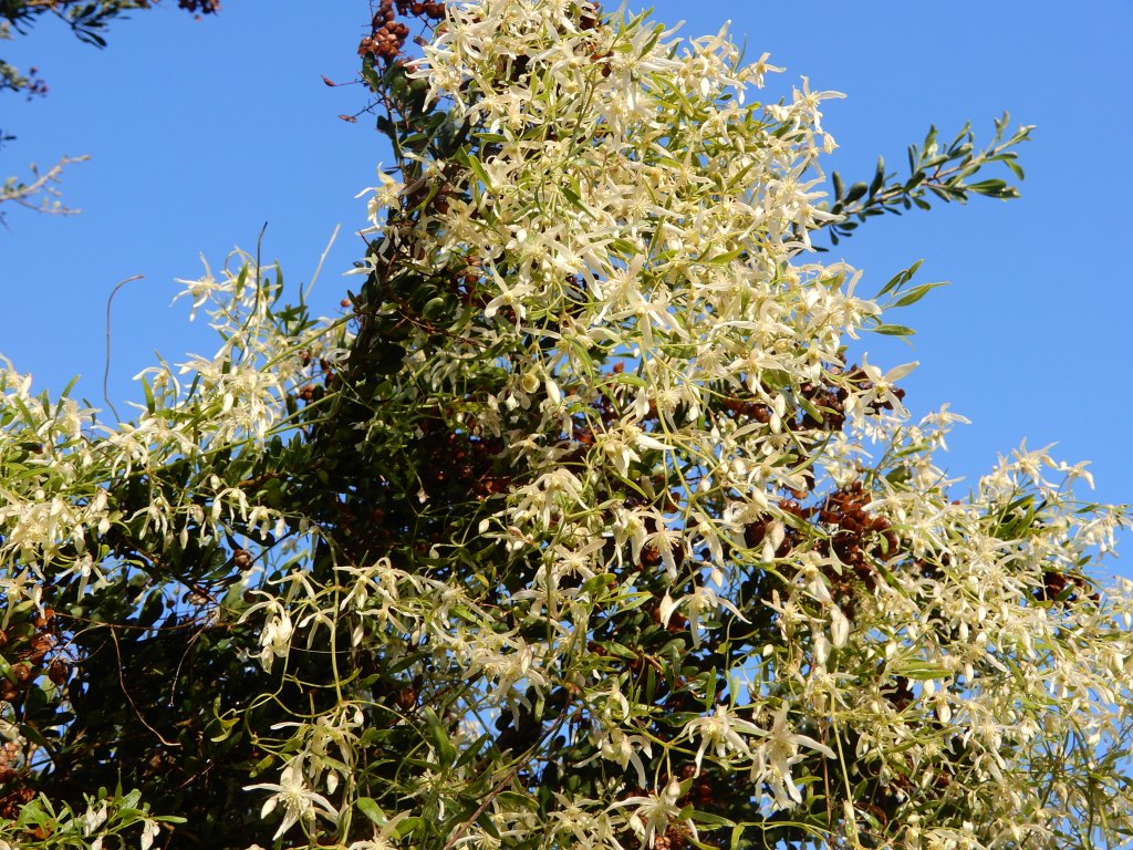 The featured image is a close up of Old Man’s Beard or Small-leafed Clematis (Clematis microphylla). You can see why it has its common name from this second photo.