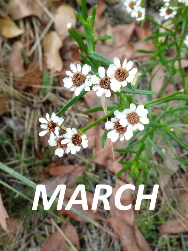What's in flower?  Slim pickings this month. A few yellow daisy species eg. Groundsels, some tea-tree and guinea flowers are still around, but not much else. The reason - adaptation.  Plants that avoid flowering and producing seed during Australia's hot, dry summer stand a better chance of surviving and having offspring. Plants that concentrate on survival rather than... Continue Reading →